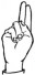 На ћирилици написано ВОЈИСЛАВ ЦРЕПУЉА састоји се из 15 слова [?]. Исписано ћириличном једноручном азбуком за глувонеме:
